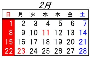 カレンダーをご確認ください